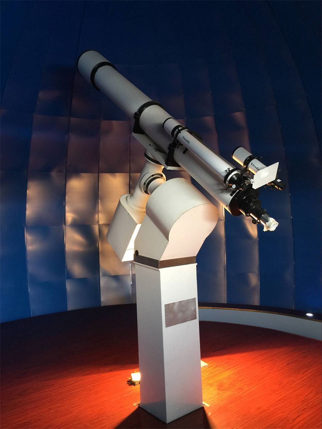 基地位于太原市清徐縣西楚王村,天文館由10米寶石狀天文圓頂、220毫米折射式天文望遠鏡以及自動尋星系統(tǒng)、日耳鏡等組成,建成后成為當地青少年學生天文科普場所。